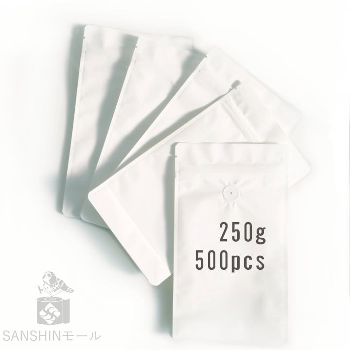 ◆500枚 【250g用】(白) SANSHIN/保存袋/コーヒー豆/ジッパー付き/インナーバルブ付/小分け袋/防湿