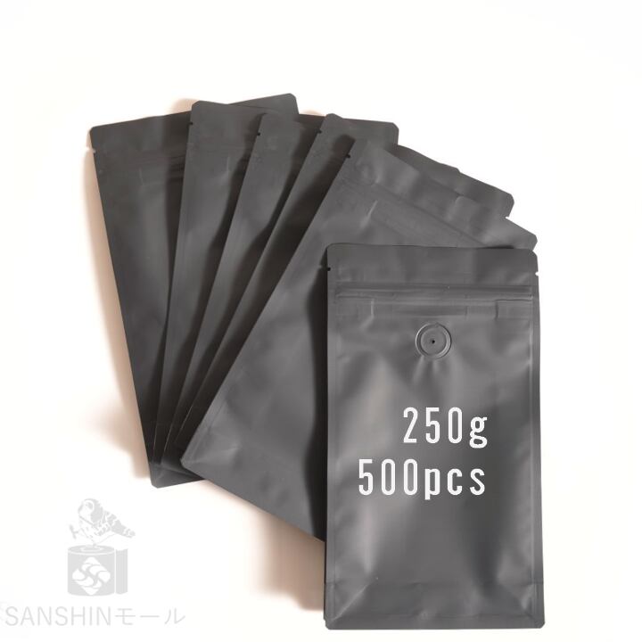 ◆500枚 【250g用】(黒) SANSHIN/保存袋/コーヒー豆/ジッパー付き/インナーバルブ付/小分け袋/防湿/送料無料