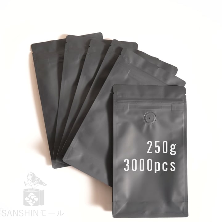 ◆3000枚 【250g用】(黒) SANSHIN/保存袋/コーヒー豆/ジッパー付き/インナーバルブ付/小分け袋/防湿/送料無料