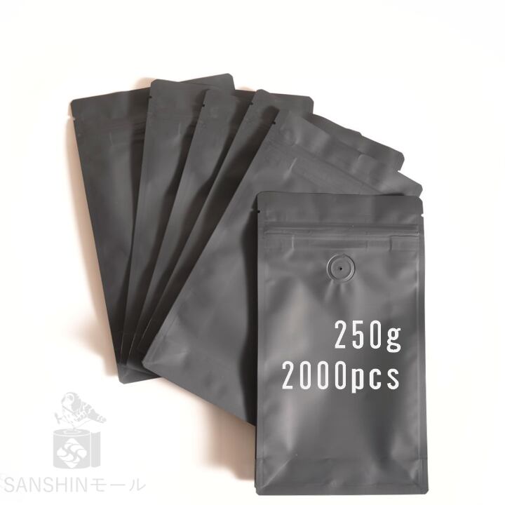 ◆2000枚 【250g用】(黒) SANSHIN/保存袋/コーヒー豆/ジッパー付き/インナーバルブ付/小分け袋/防湿/送料無料